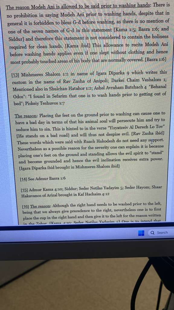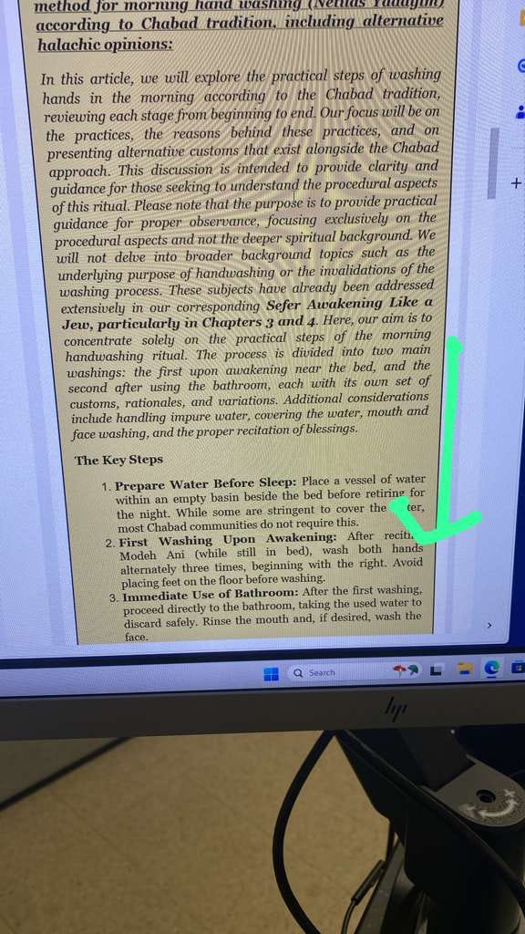 So she asked a Rav what to tell them. He answered with clarity and compassion that, yes, washing by the bed before your feet touch the floor is the preferred way according to Kabbalah and Chassidus, but a person can at least simply wash before leaving their home.